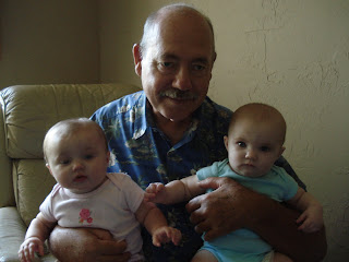 On Monday, Paula had an appointment, so Papa and Grandma got to stay with the girls for a little while. Here is Papa with his precious babies on his lap. He is never happier than when he gets to visit them.