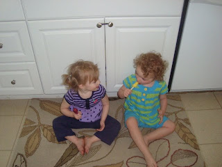If you have read this blog for a while you know we spend a lot of time singing when we are with the girls. Over the months, Claire was usually the "singer" but lately Chloe has picked up and is giving Claire some competition in the singing activities. The little movies below show segments of a discussion back and forth between the twins about singing. One usually telling the other one to stop. In the midst of the singing discussion, Chloe is taking Claire's hand and saying, "Glad to meet you Claire" before Claire removes her from the table. I hope this love of singing follows them through life, because a little music goes a long way in making a joyful soul. It was so fun this morning in Sunday School to hear Chloe singing right along as they sang "Jesus Loves Me."